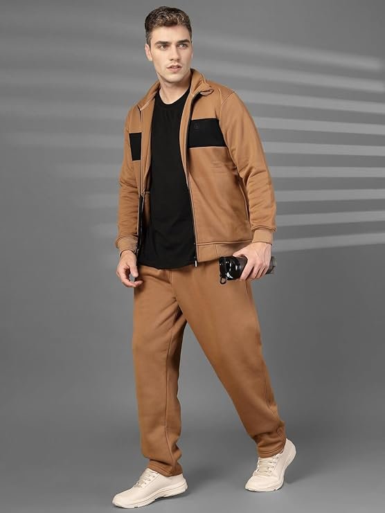 High Neck Winter Tracksuit Full Zip Jacket with Elastic Waist Lower